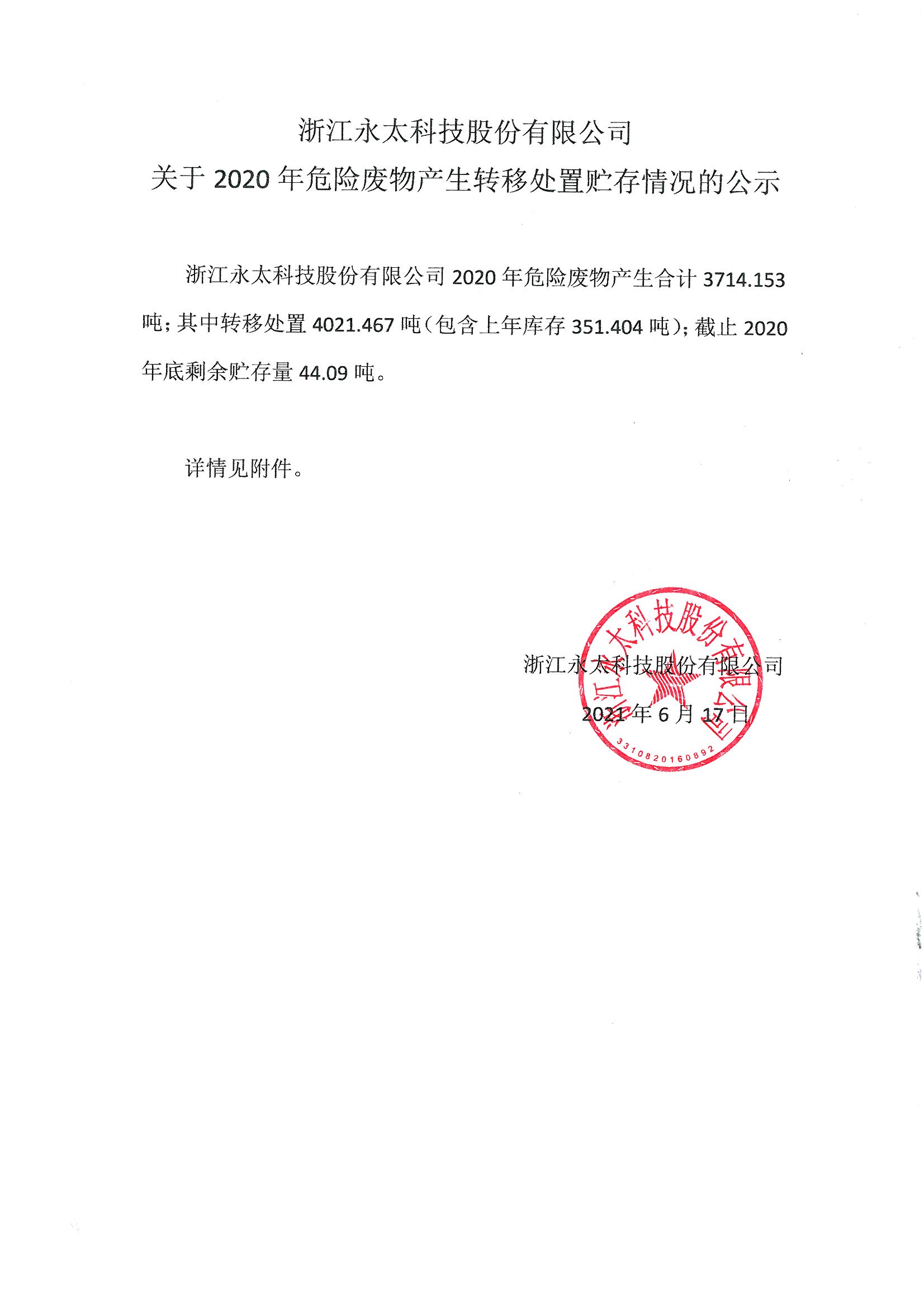 永太科技2020年危废公示