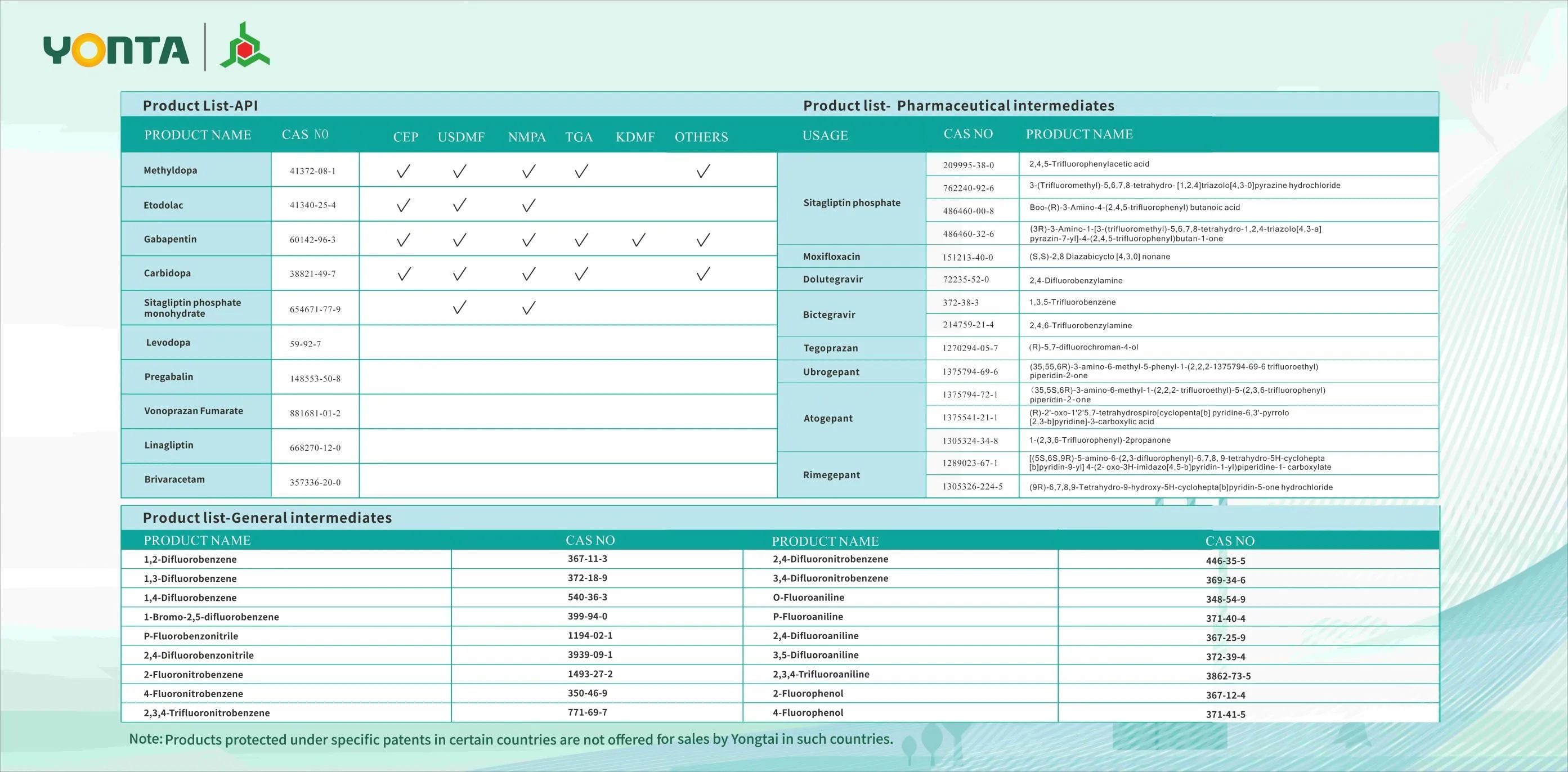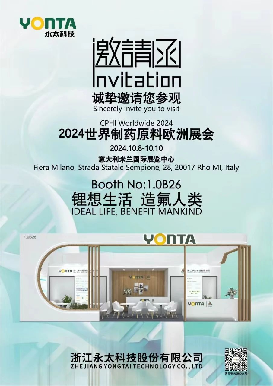 本次展会上,永太科技携全资子公司浙江手心制药有限公司、浙江永太手心医药科技有限公司及浙江永太药业有限公司联袂出席,将为您呈现含氟医药中间体、医药原料药、医药制剂等产品,并提供定制加工服务,特邀您莅临参观,与全球制药行业专业人士共襄盛会。