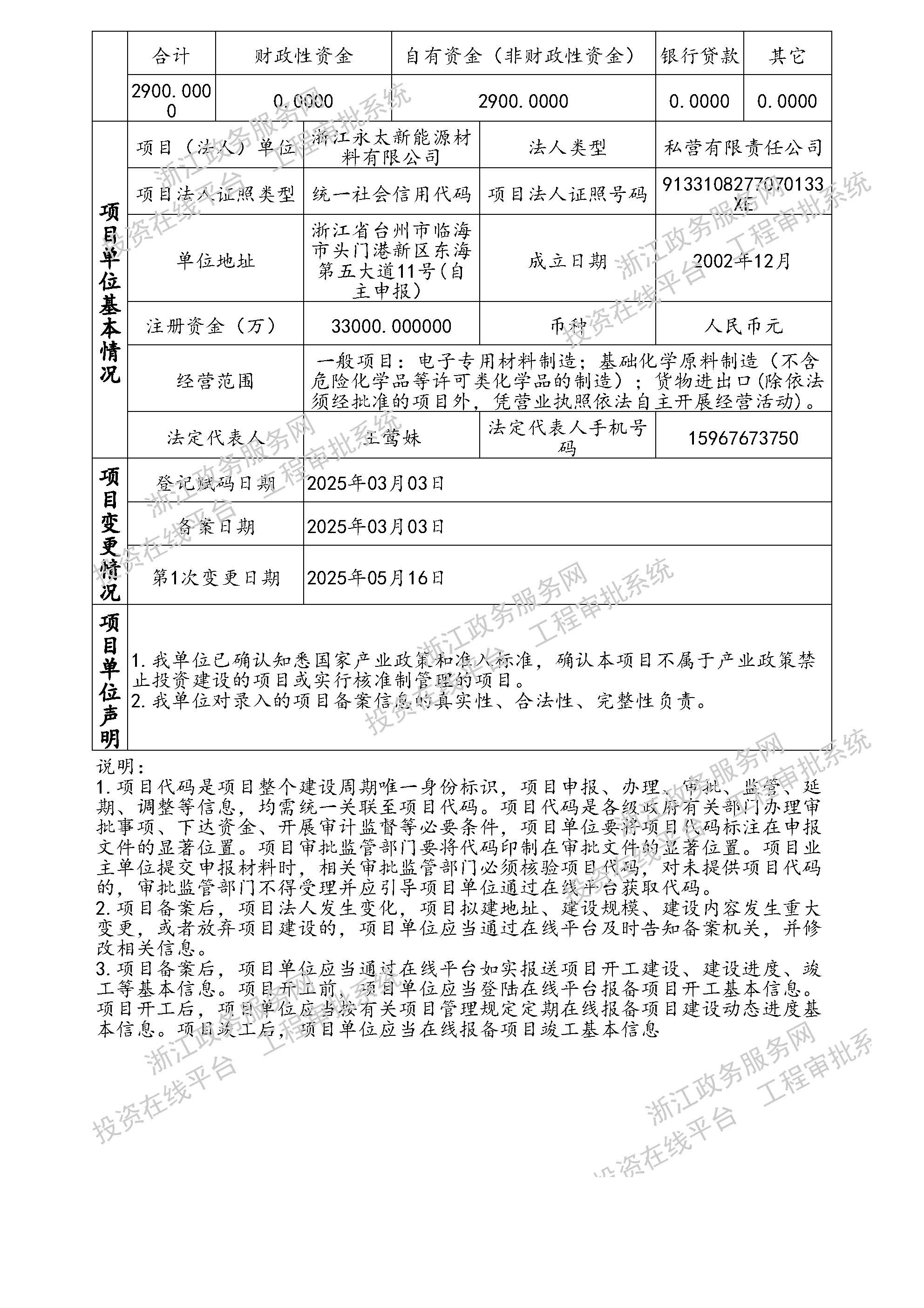 表4 永太新能源主要污染物总量指标 单位:t/a